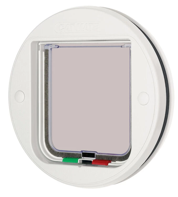 The Cat Mate Circular Glass Fitting Cat Flap White is perfect for fitting into single or double glazing, as well as in wooden doors. It is easy to fit and has a silent action, meaning it is great for pets who are sensitive to noise.