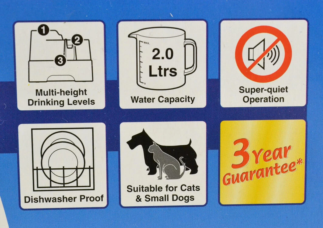 Made using an isolated pump system, the Cat Mate Pet Drinking Water Fountain runs with almost no audible noise what so ever. Constructed from sturdy plastic materials, this automatic water fountain has a 3 year guarantee and can be cleaned in a dish washer.