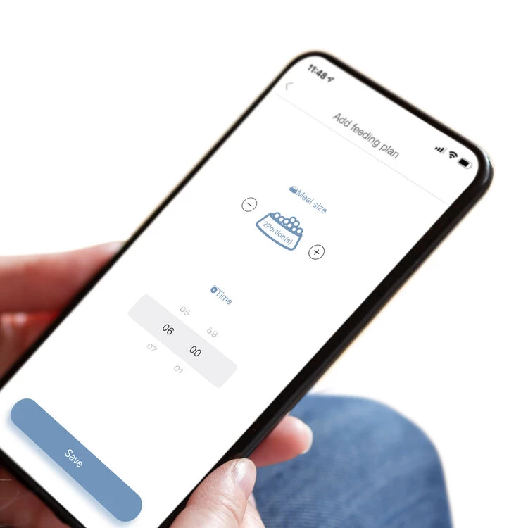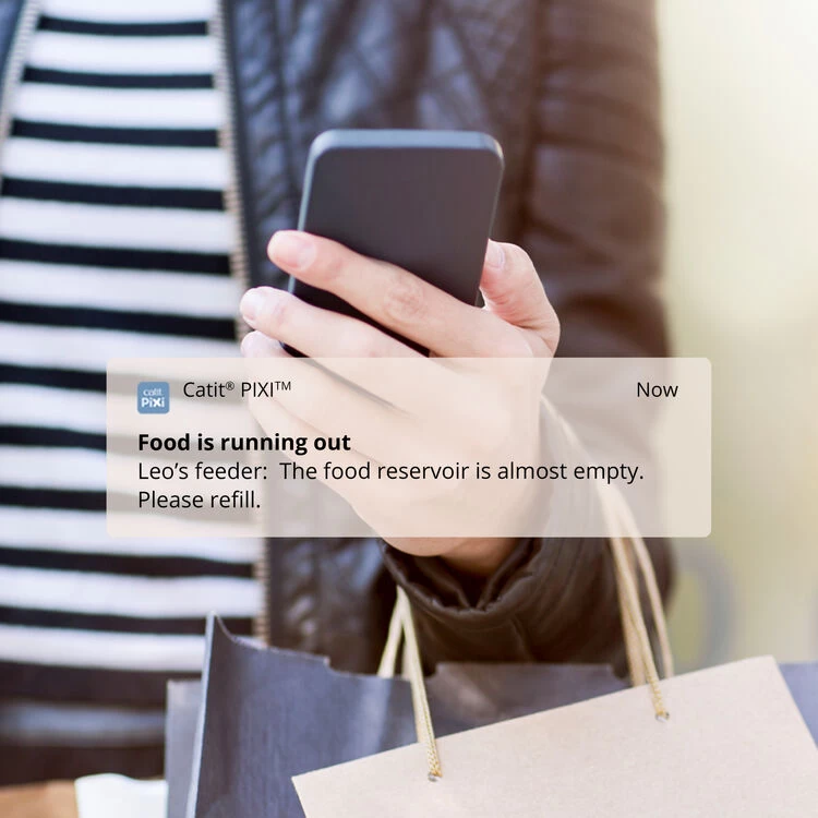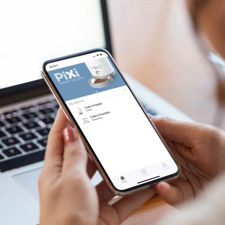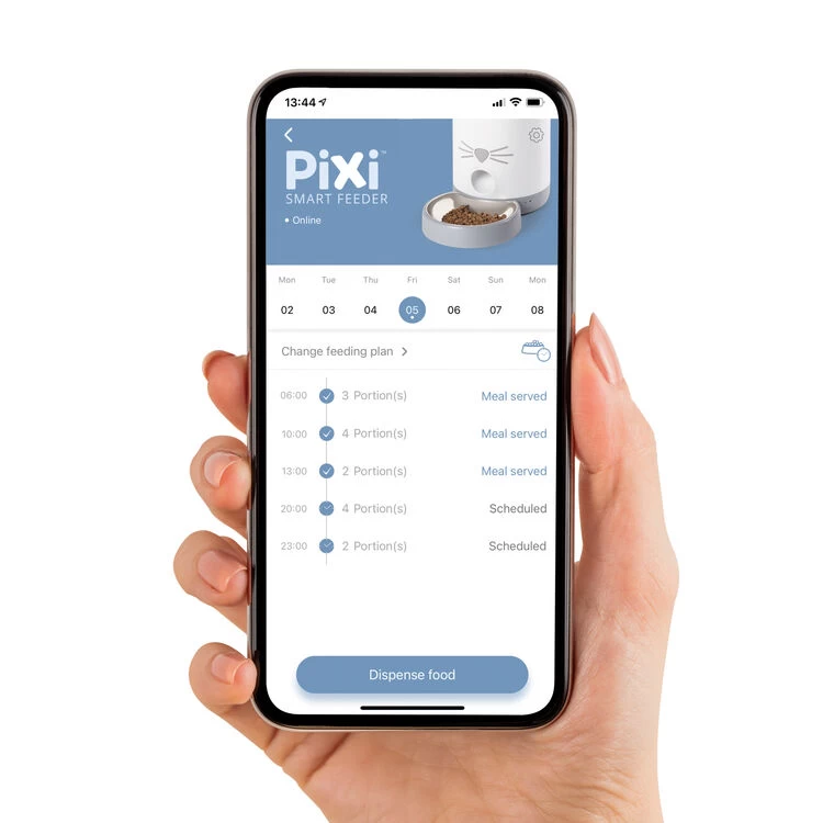 The Catit PIXI Smart Feeder provides cats with timely, portioned meals, even when pet parents are not at home. Appealing to a cat’s natural instinct to eat various small meals throughout the day, reducing the risk of binge eating. With the mobile app, it’s easy to schedule regular feedings without fail or delay, and to monitor food intake by setting custom meal sizes. Feeding times can be scheduled or food can be dispensed at the press of a button.