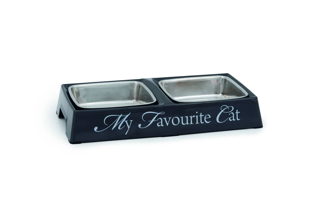 With the Designed by Lotte My Favourite Cat Diner Set, your cat’s food and water are always close at hand. This dining set is made of melamine containing two removable stainless steel bowls with a narrow rubber rim to prevent noise and sliding. The food bowl is easy to lift by the handles on the side and is completely dishwasher safe.