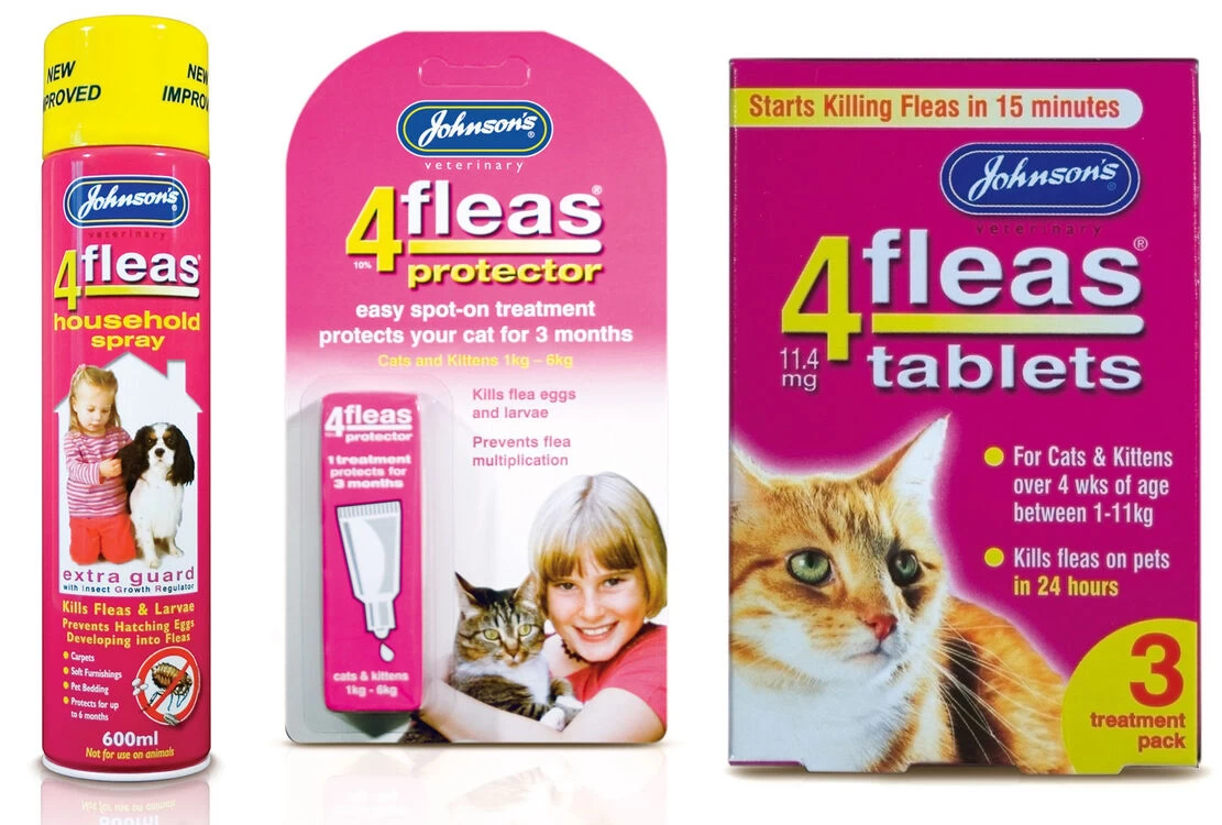 Johnson’s 4Fleas Cat & Kitten Tablets (3 treatment pack) – Containing 3 tablets per pack, this fast-acting flea treatment begins to take effect after 15 minutes, and will have completely killed any fleas living on your cat after 24 hours. Suitable for cats & kittens between 1kg & 11kg.