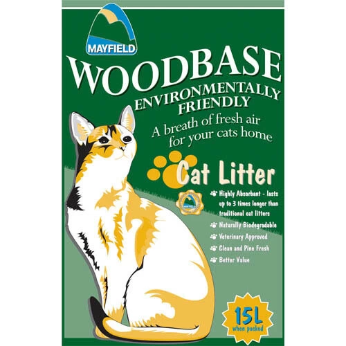 Mayfield Woodbase Natural Cat Litter is a highly absorbent product that has a fresh pine fragrance. The wood based cat litter is biodegradable so good for the environment, with clumping properties that mean the tray will be easier to empty.