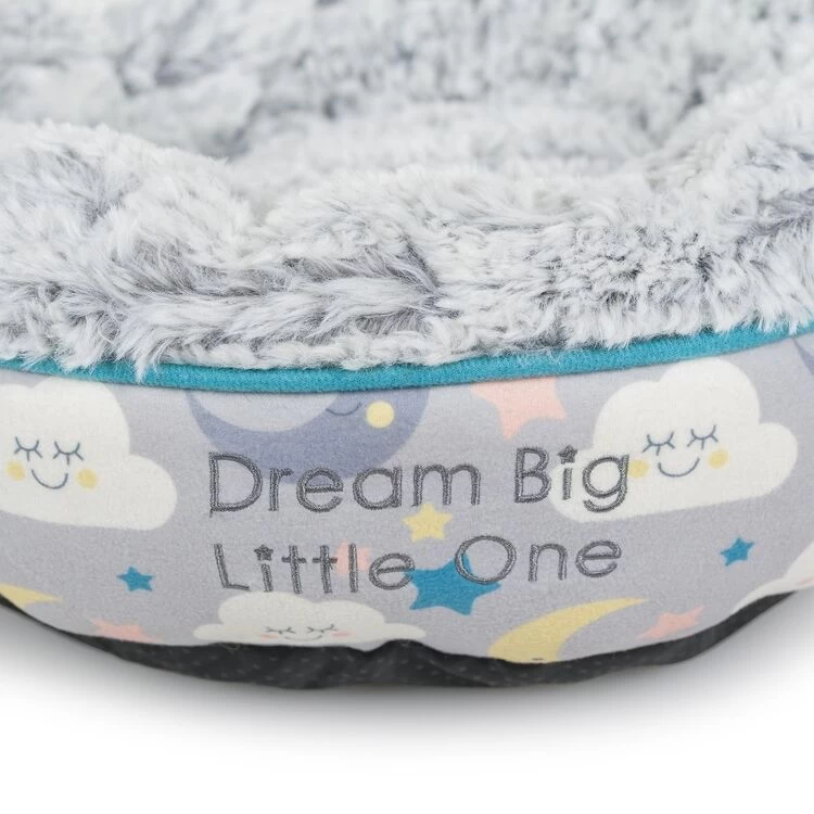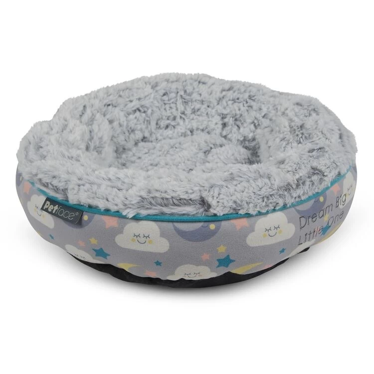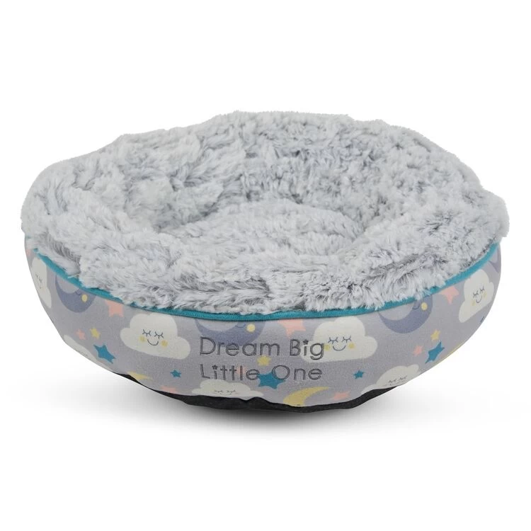 The Little Petface Donut Cat Bed is a warm and cosy sleeping space for your kitten ‘Dream Big Little One’ is embroidered onto the side, making it perfect for your pet to relax and snuggle in.